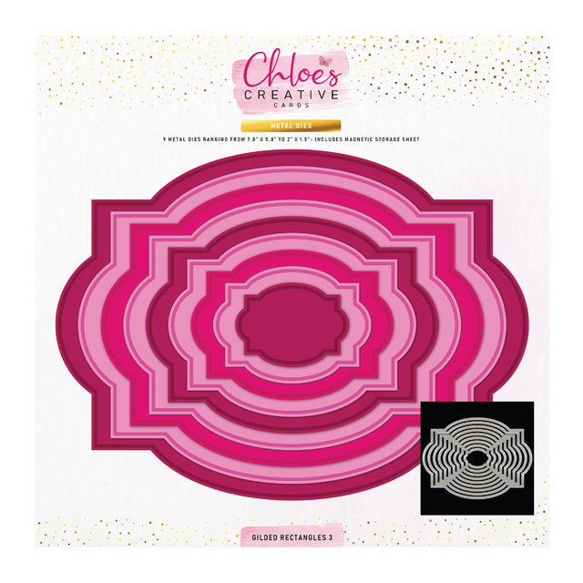 Chloes Creative Cards Metal Die Set – 6x8"Gilded Rectangles 3 is backordered and will ship as soon as it is back in stock.